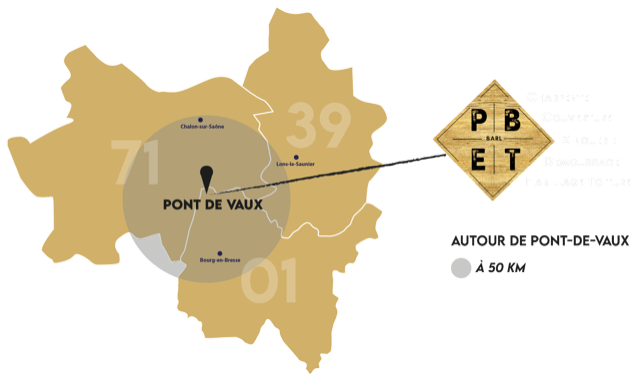 PBET, entreprise artisanale spécialisée en charpente, couverture, zinguerie et ossature bois, intervient dans un rayon d’environ 50 km autour de Pont-de-Vaux. Notre équipe accompagne les particuliers, les professionnels et les collectivités pour tous leurs projets de travaux de toiture et de structures bois, en neuf comme en rénovation.
